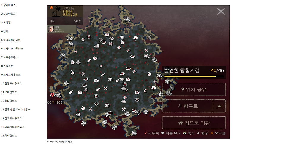 [듀랑고] 찰리 열대무법섬 티타니아코트디부아르 지도