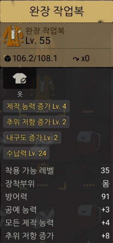 2. 완장 작업복 ( 완성품최대레벨 : 55 / 추천재료레벨 : 55 )