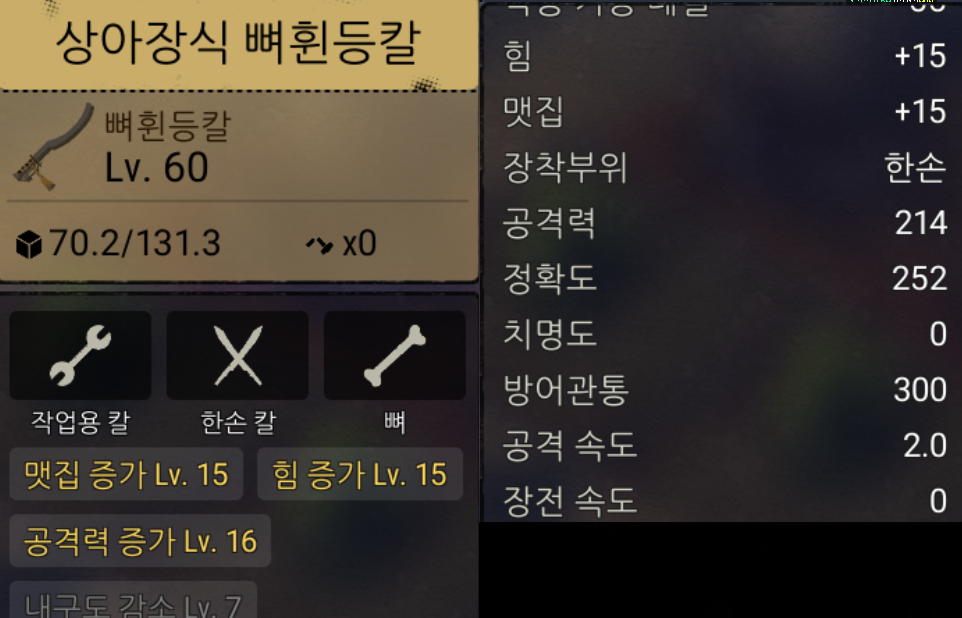 - 뼈휜등칼날 (한손) = 뼈휜등칼