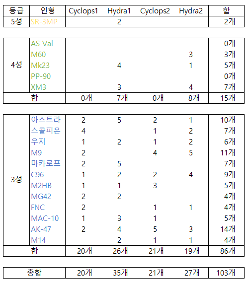 [소녀전선] 10-4E 수색요정 150회 코어 수급 정리