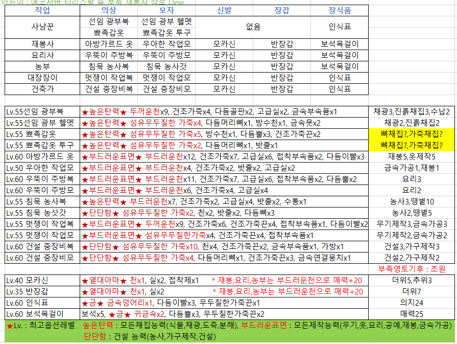 추가) 단단함의 건설능력에 의해 상승되는 능력치를 표기하였습니다.