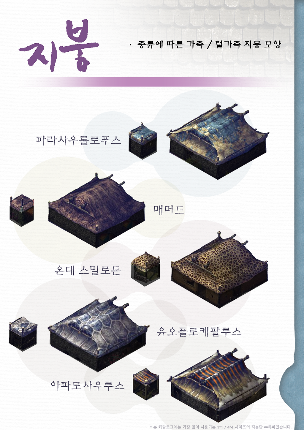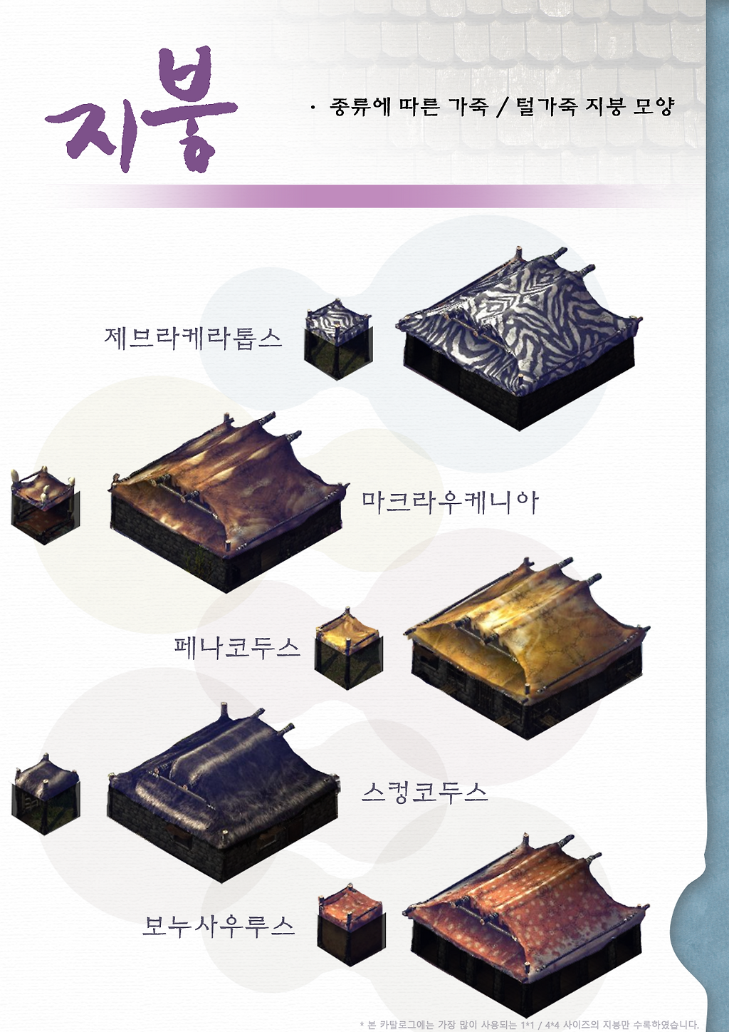 지붕재 같은 경우는 가장 자주 사용되는 11사이즈와 44사이즈만 수록하였는데