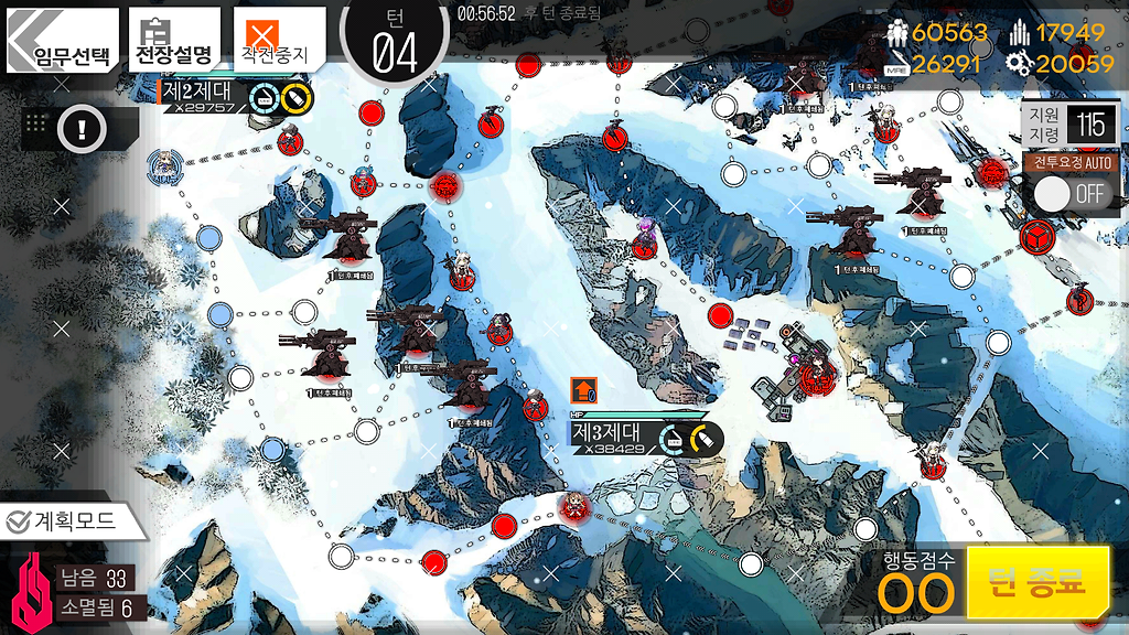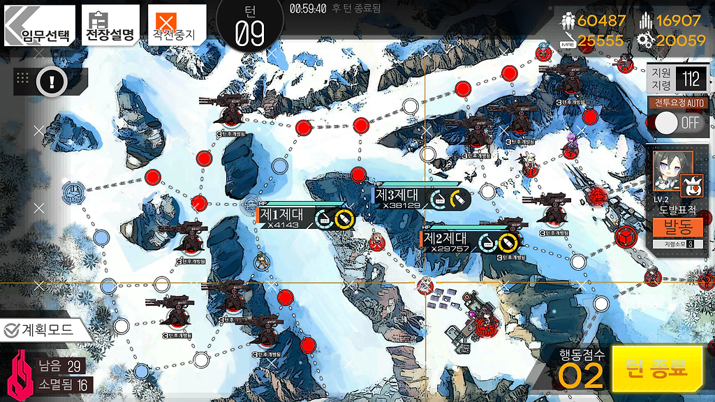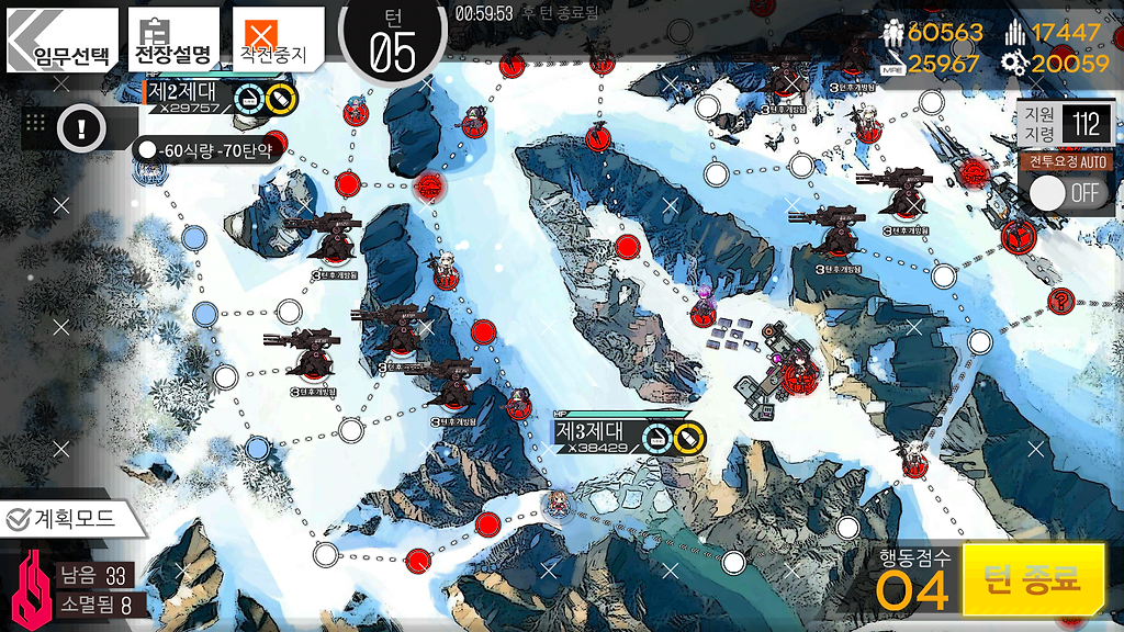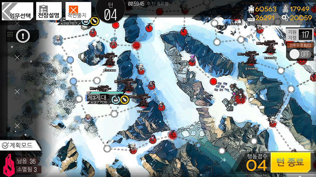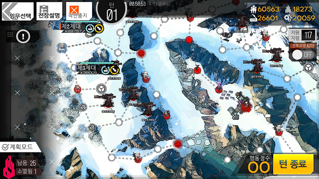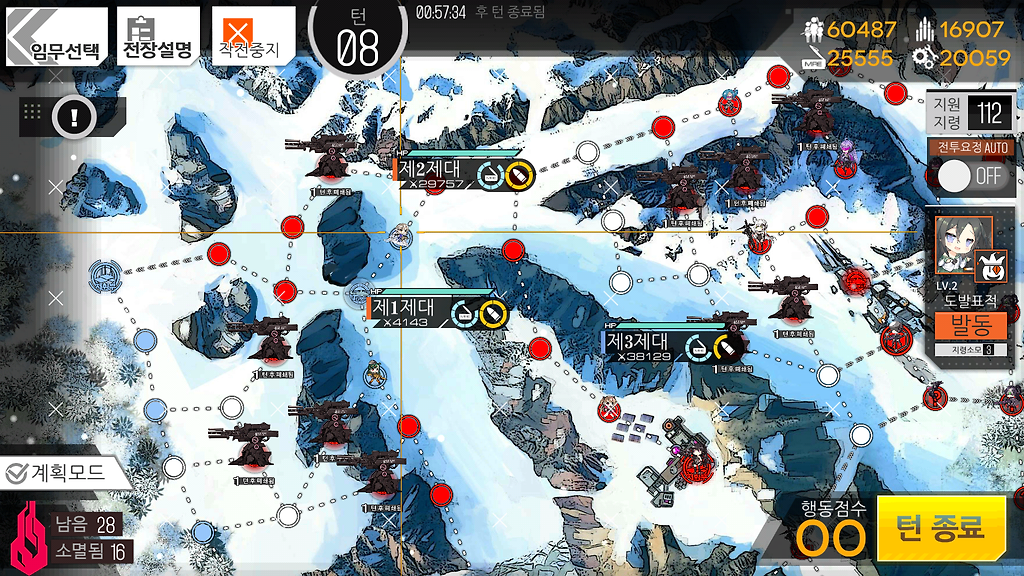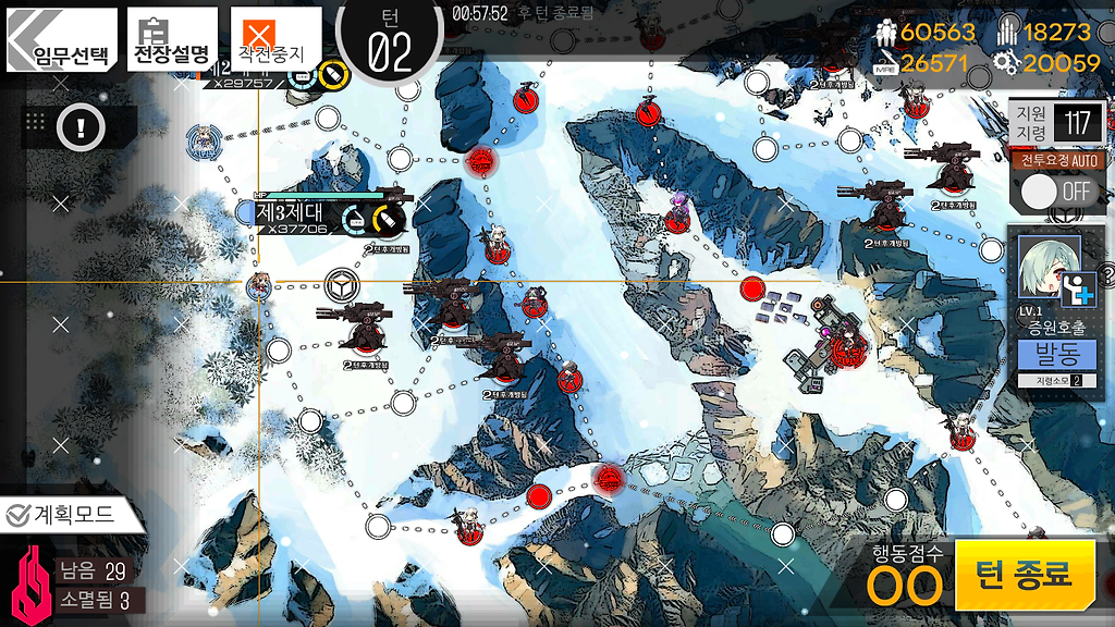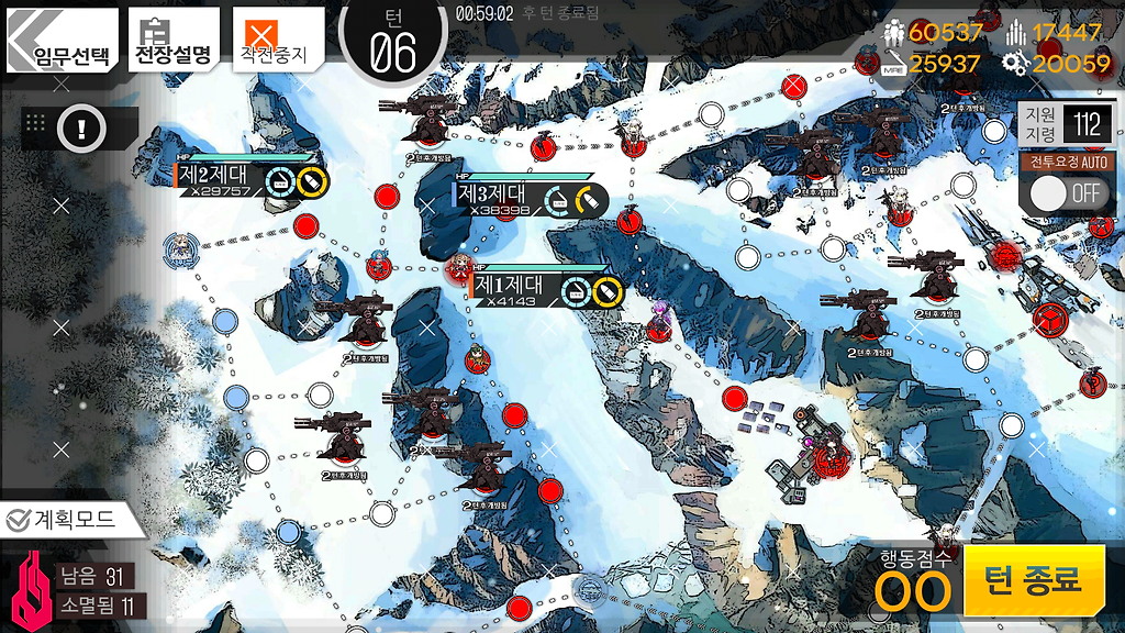 저도 여기선 동쪽 헬리포트가 먹힌관계로 4턴이 나왔는데 만약 5턴이 가능하시다해도 더 이상 뭔가를 하지 않고 턴종료를 하시는걸 추천드립니다.