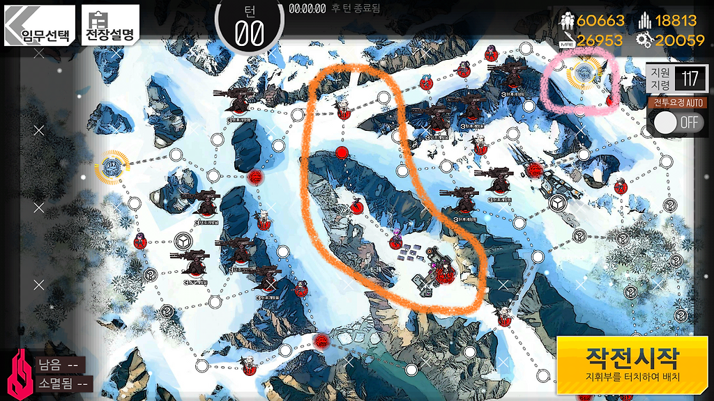 분홍색 헬리포트는 사용하지 않는 헬리포트지만 철혈이 얼마나 빨리 점령해주나에 따라 이쪽의 행동점수에 영향을 주므로 표시해놨습니다.