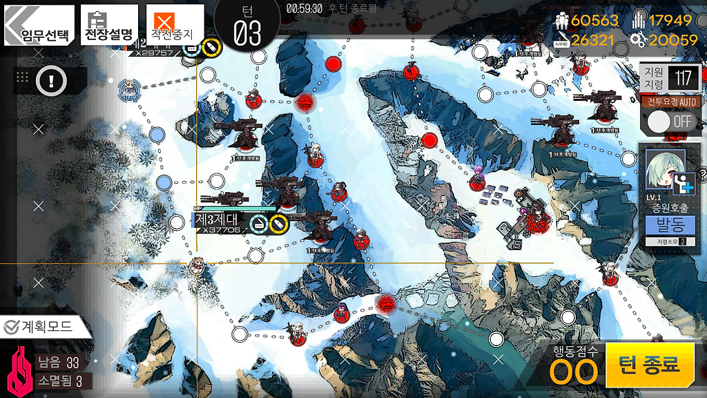 3턴은 시작하자마자 보급상자를 먹고 남은 행포를 최대한 사용해 밑으로 움직인 후 턴 종료.