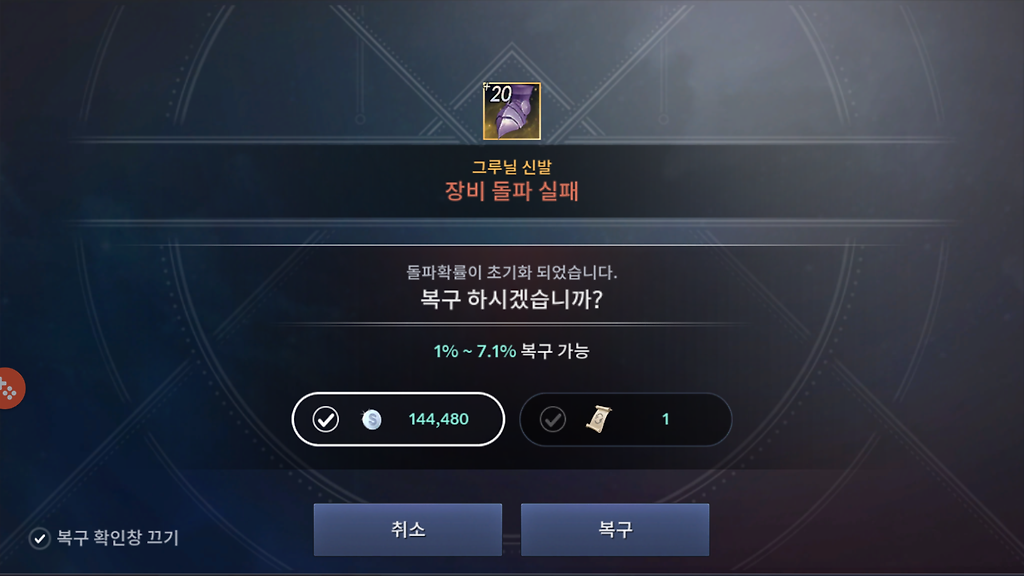 돌파 복구권 한장에 평균 4%를 복구할 수 있다고 합니다.