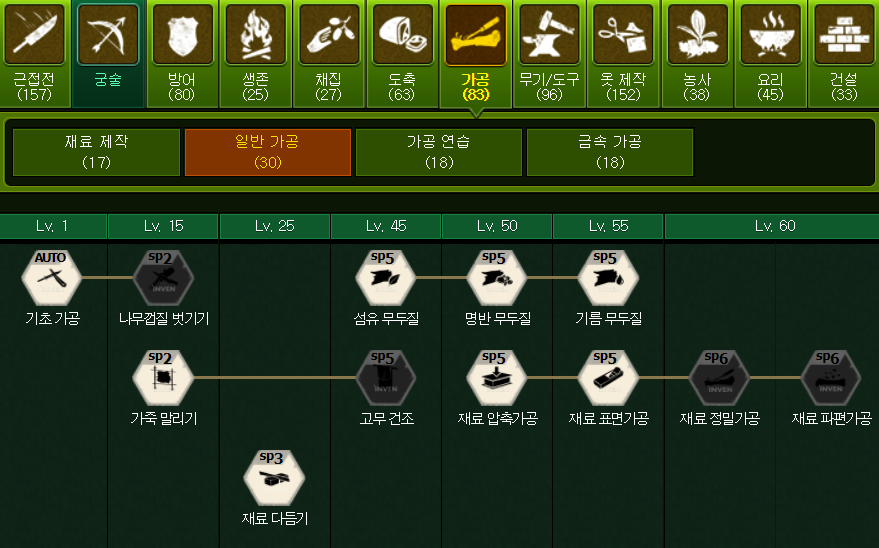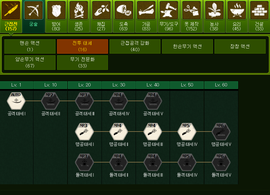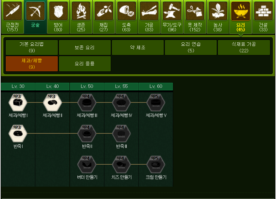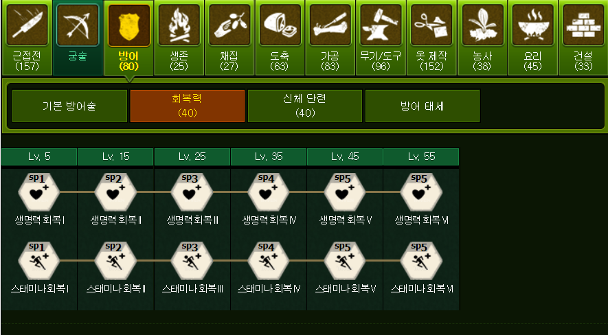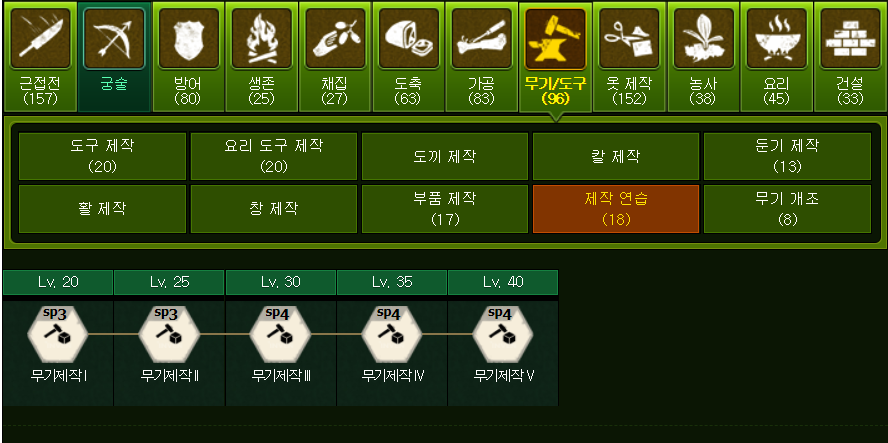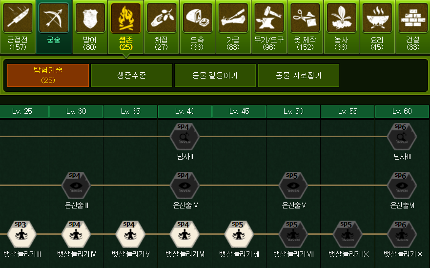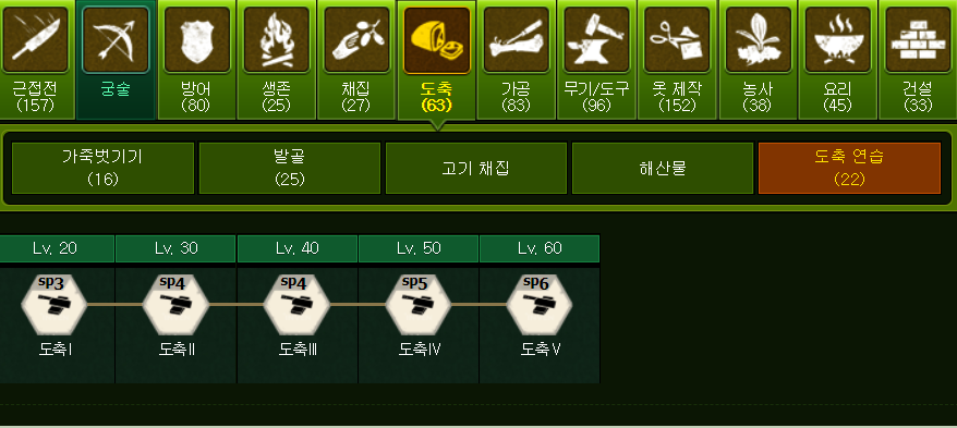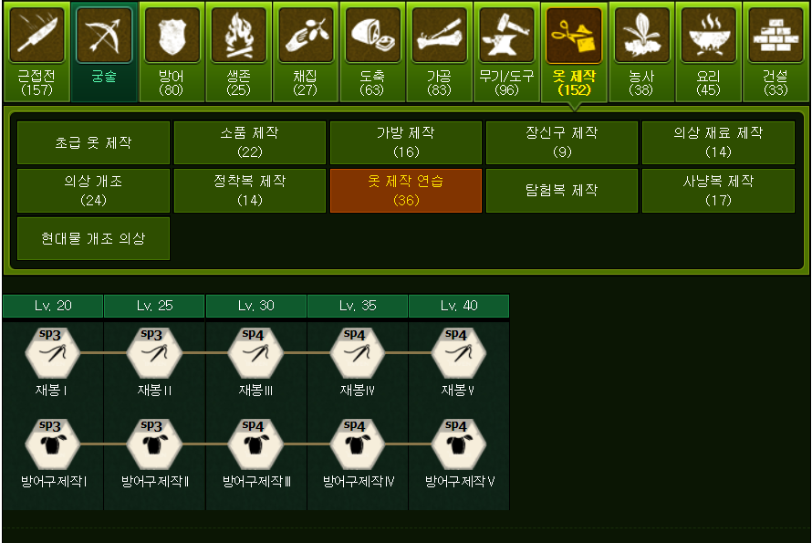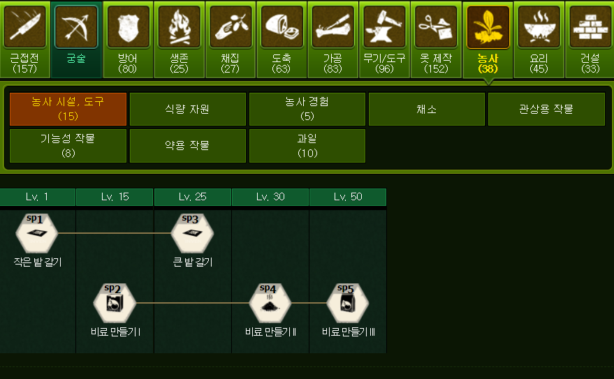 1. 사냥,채집,요리,농사,무기제작,옷제작,건축 등 모든 분야에 스킬포인트를 우겨넣음으로써 다양한 컨텐츠를 즐길 수 있게하였다.