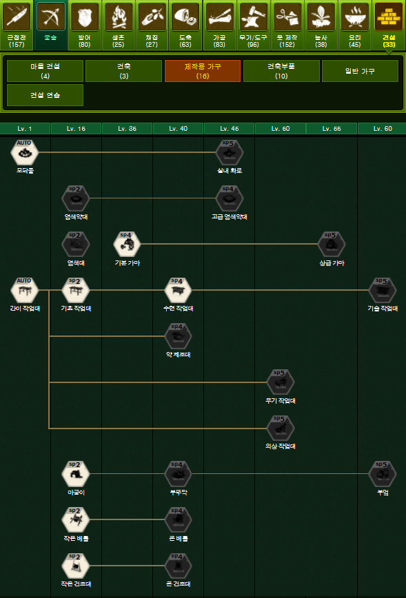 사실 건축부분은 설비, 건축물의 수명도 긴편이고 하위 스킬들이 복잡하게 얽혀있어서