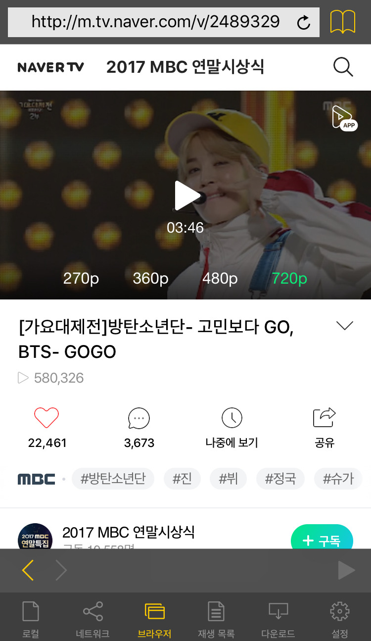 3. 그럼 요로케 네이버TV화면이 어플안에서 보임