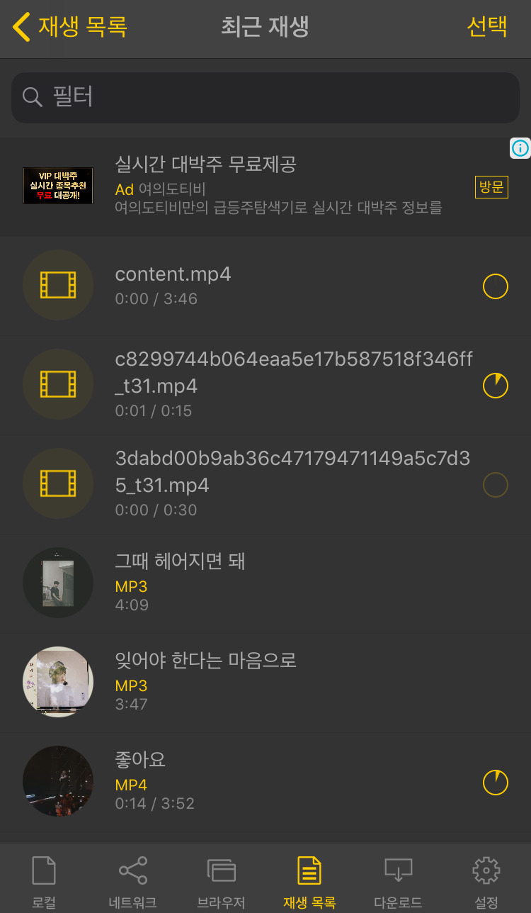 6. 밑에 메뉴에서 재생목록을 누르면 뜨는 화면임