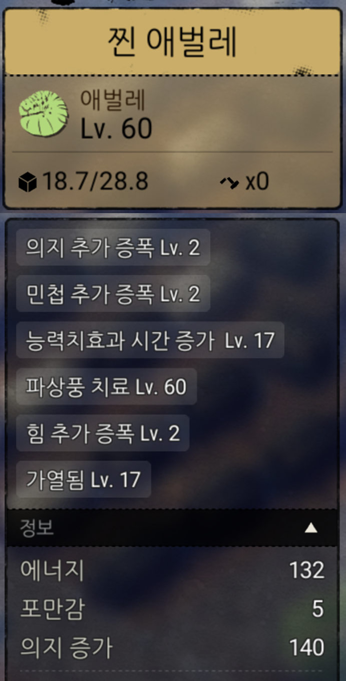 *레시피 - 애벌레1+향신료(약초)1 - 돌판구이