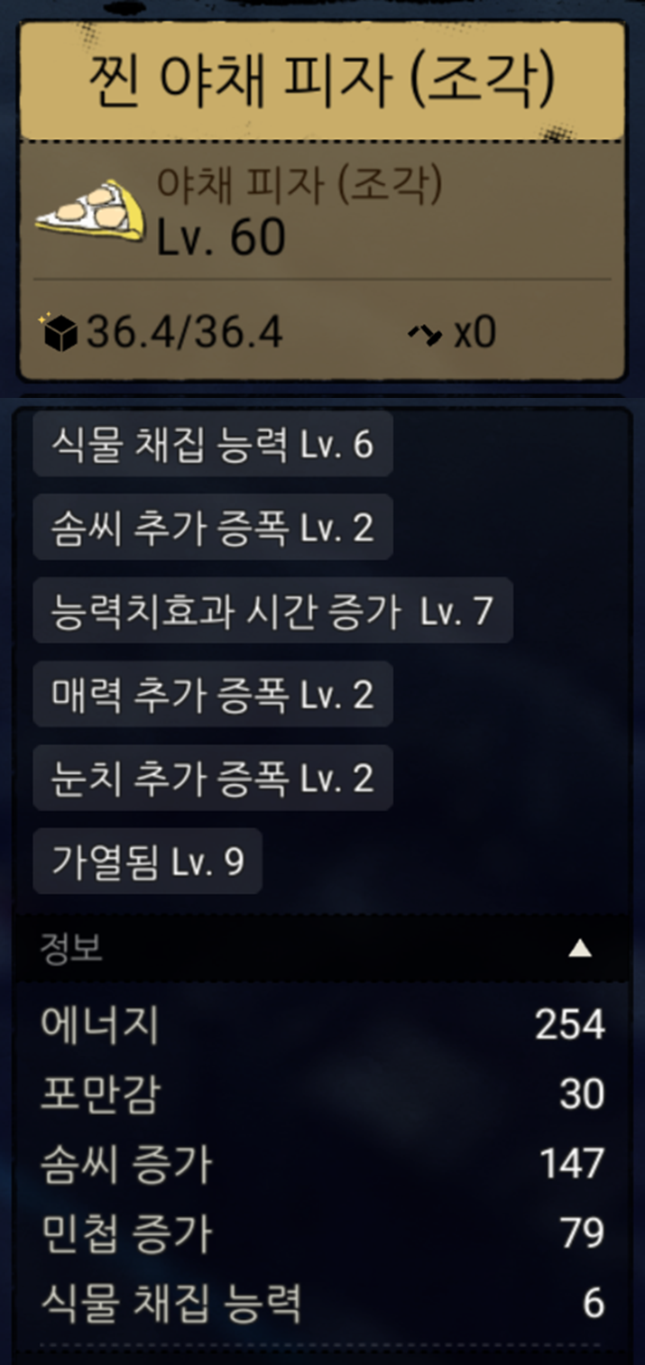 3.채집,채광 - 야채피자(솜씨,식물채집능력)