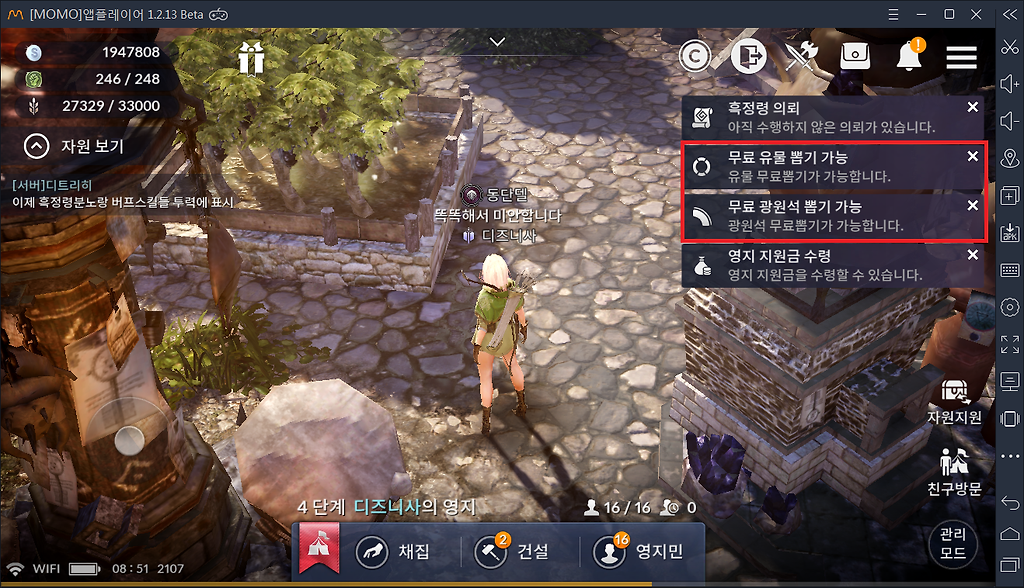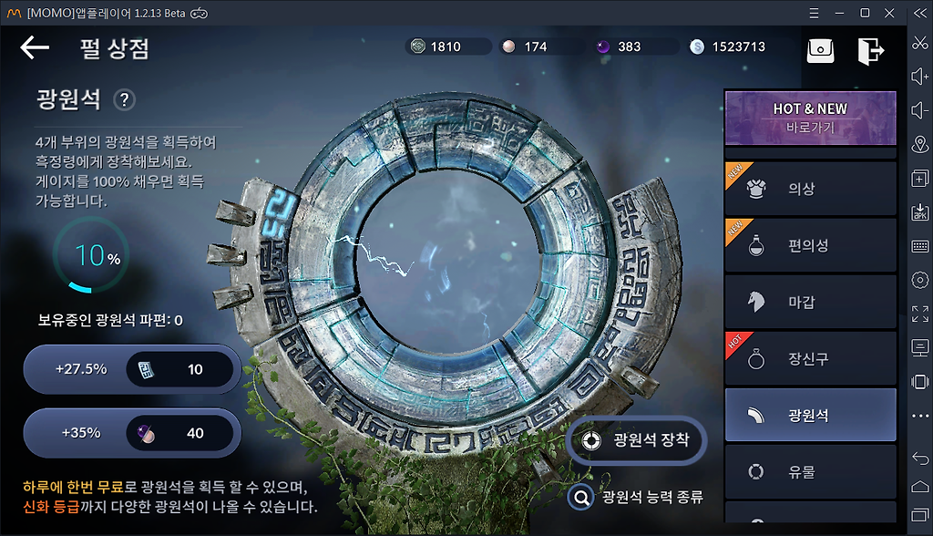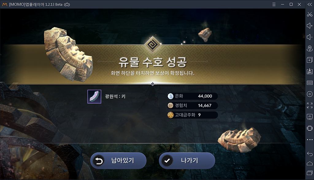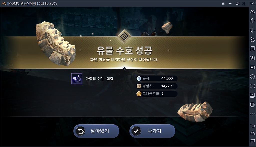 2.무료로 유물이랑 광원석 뽑음