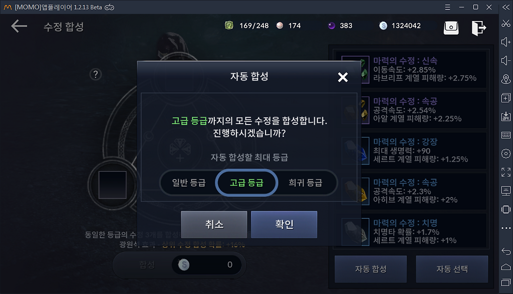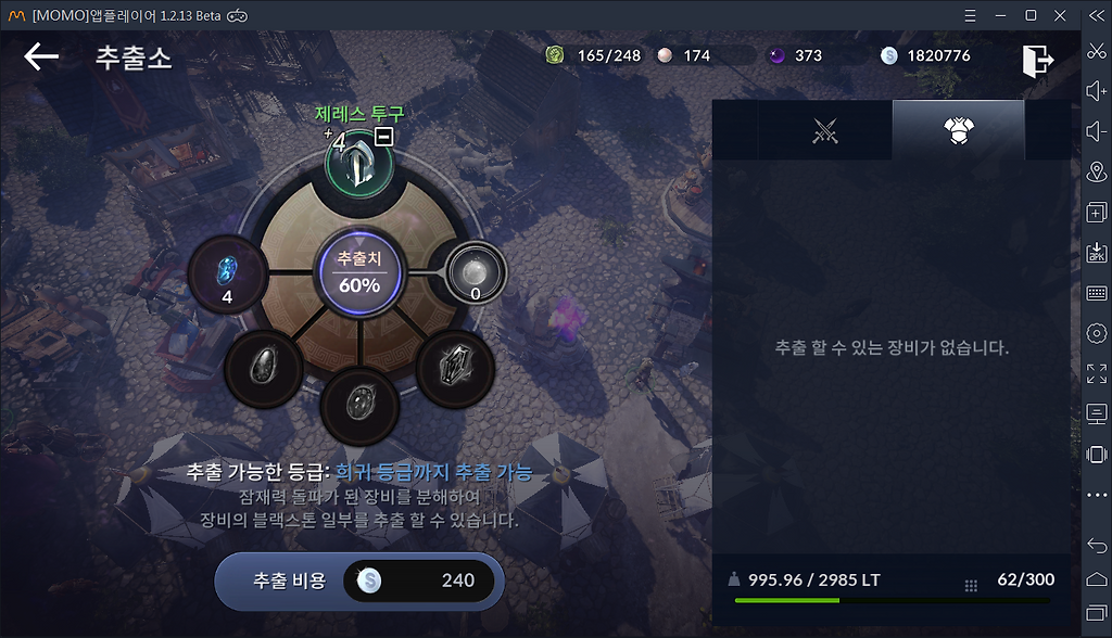 레벨상승시마다 추출 등급이 높아집니다.(현재 2단계: 희귀등급)