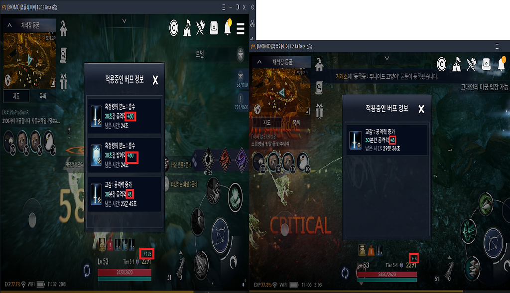 추가버프공격력은 위에 표시되는 +로만 표시됨
