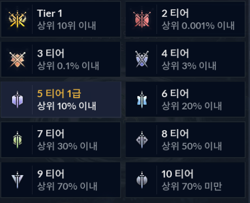 + 보다시피 5티어 1급수이면 요래 표시되고 올라가게되면 4티어 5급수가 됨