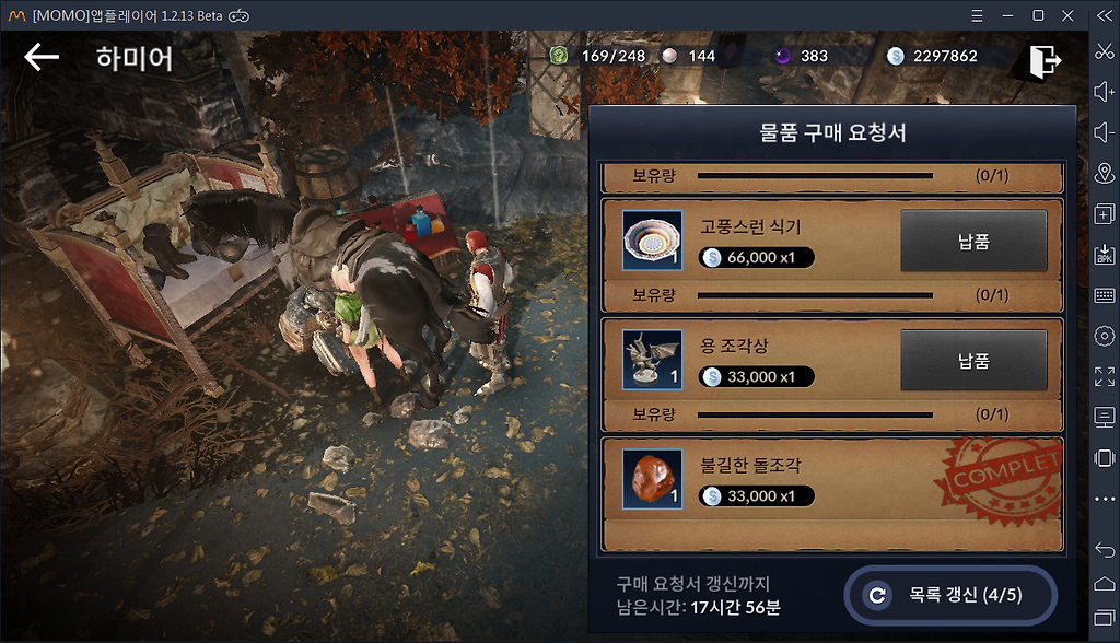 무역품 갱신시 18시간 행동력 216정도 까임 시간 없을때 1번 빼고는 사실상 안쓸기능