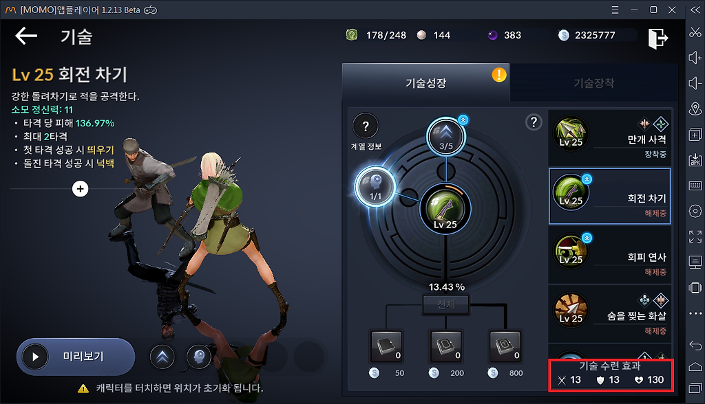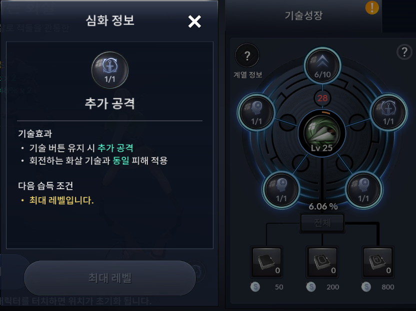 10. 레인저 회전하는화살 추가기술 습득 -타직업은 제가 갖고 있지 않아서 관심밖...