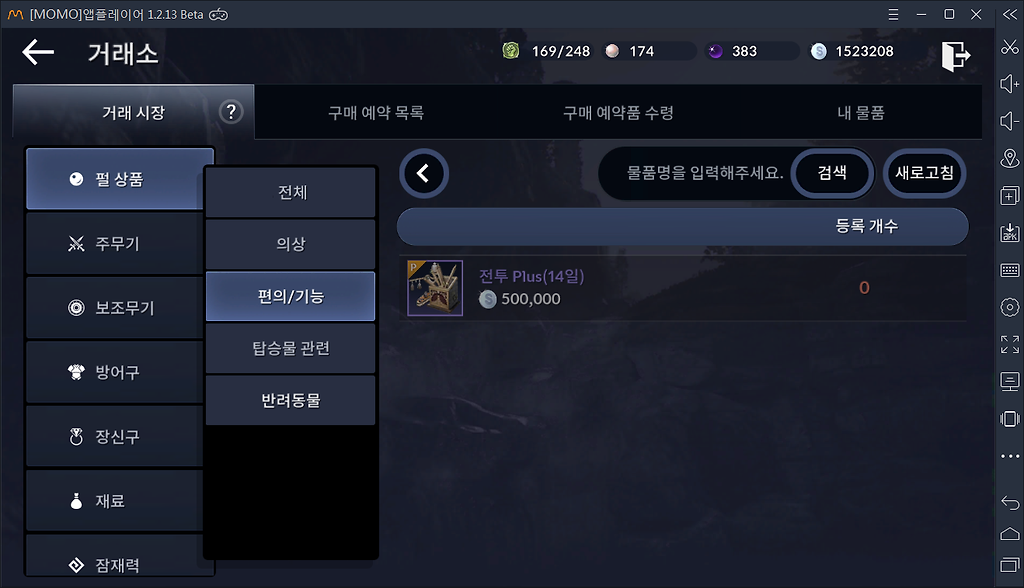 12. 아이템 클릭시 거래소기능 원래 있었나? 문제 제기시 삭제