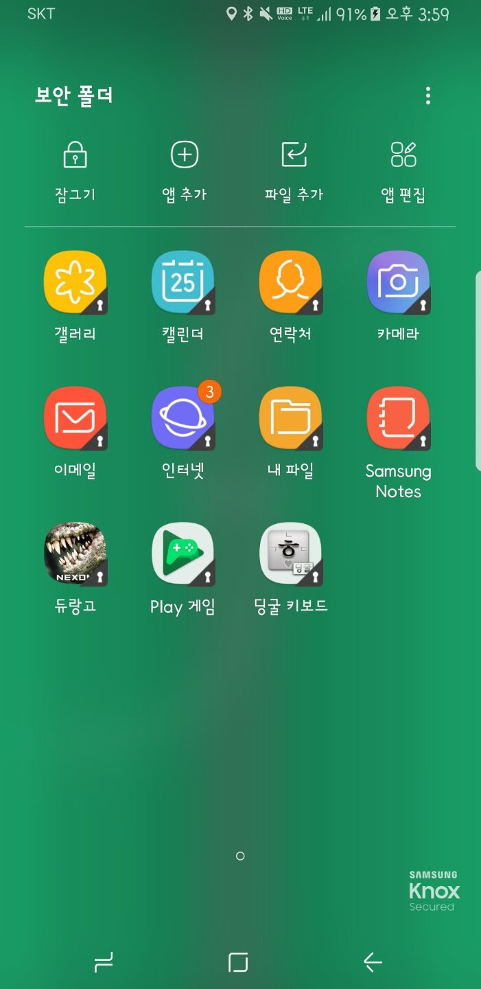 삼성 갤럭시 핸드폰에는 기본적으로 보안폴더가 있어, 아예 새로운 핸드폰환경을 구성할 수 있습니다. 여기서 듀랑고 앱과 Play게임 앱을 설치하여 다른 구글계정으로 1개 로그인해서 사용할 수 있습니다. 또한, 보안폴더 앱에서 설치 후 홈 화면에 배치할 수 있어 접근하기도 쉽습니다.