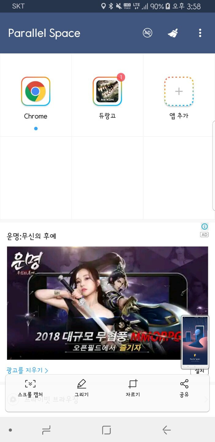 * 위에 제시한 복제앱 이외에도 작동하는 것들이 있을 수는 있겠으나, 여러가지를 해보고 실제로 접속되는 것들만 써보았습니다. 더 필요하시면 구글스토어에서 찾아보세요!
