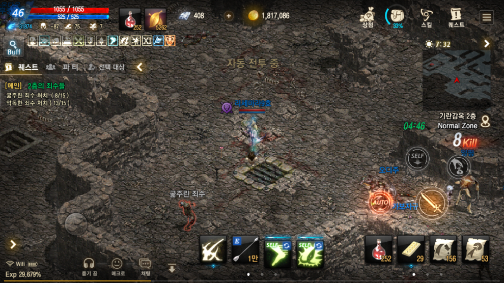 슬슬 와퍼 줏어먹으면서 완료하면 행동대장 퀘 나오는데 이것도 마찬가지로 뛰어다니면서 보이면 오토누르고 공격시작하면 트리플 한방 날려주면서 오토 꺼주는 식으로 해주면 편합니다.