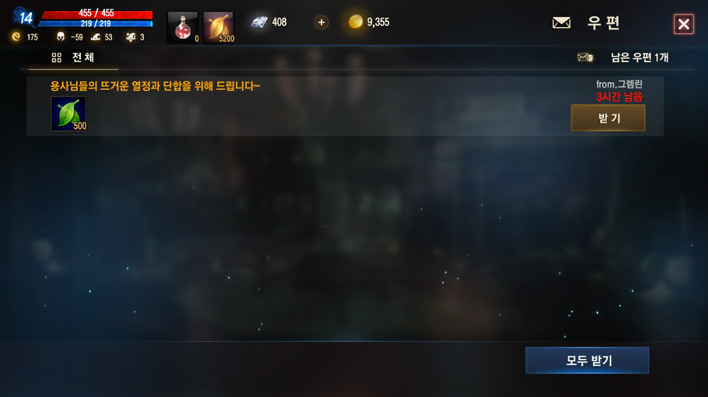 마침 12시 타임 푸쉬보상이 들어와서 500개 추가로 받고 시작하네요