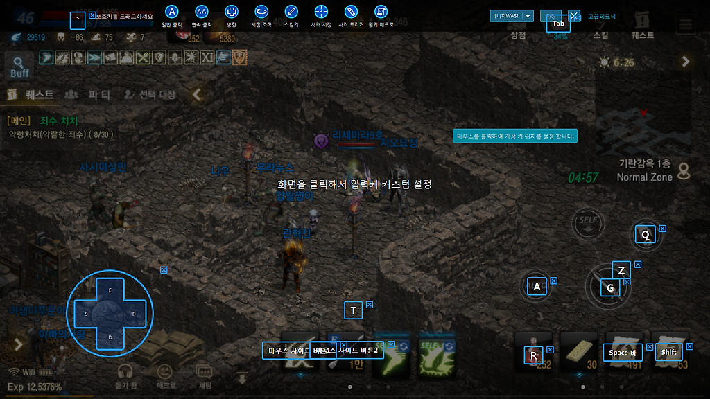 보통 상하좌우 키를 wasd 키로 설정을 하시는데 저는 esdf 키로 설정해 놓고 a키를 오토키로 설정해 놨습니다.