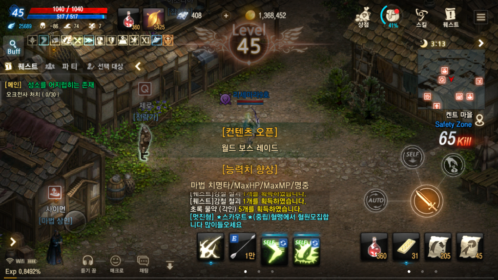 혈가입 해달라고 하는 시간이랑 잡다한 시간 빼고 빡겜 했다 치면 1시간 만에 40렙 찍었다 생각하시면 될것 같습니다.