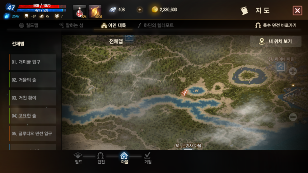 저는 그냥 하이네 늪지대 텔 타서 뛰어갑니다.