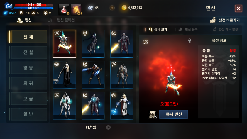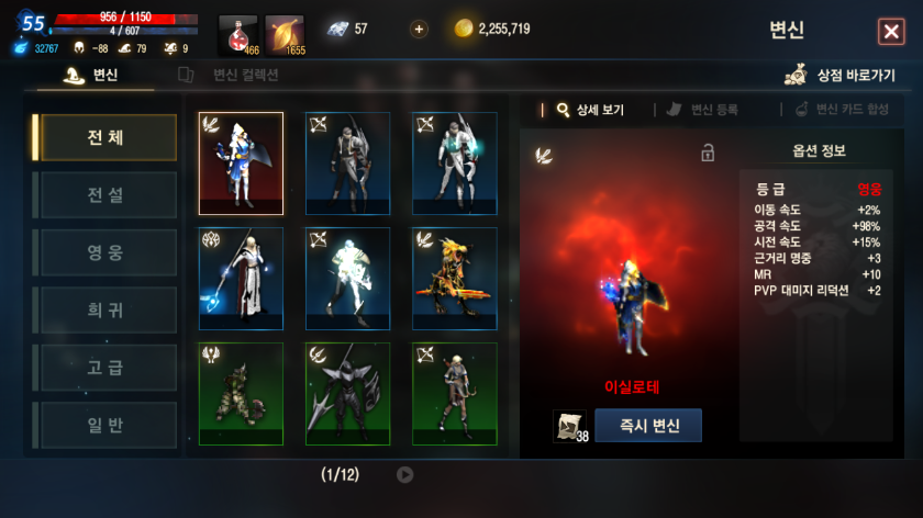 기사는 템도 별로였고 변신도 괜찮은게 나온덕에 요정으로 전환 했지만..