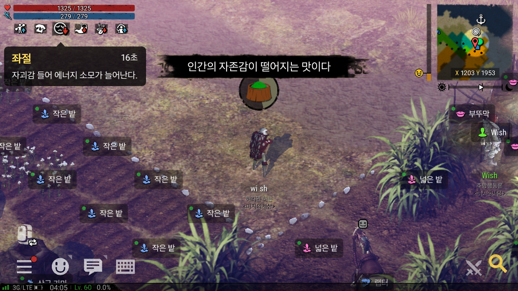 듀랑고는 의지를 높이면 작업속도가 증가한다
