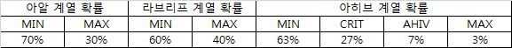 아히브 계열의 경우는 총 4가지로 나뉘어지고 각각의 발동 확률은 아래와 같습니다.