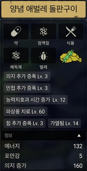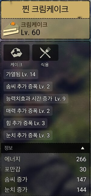- 설탕 : 솜씨, 매력, 눈치 추가 증폭 Lv2