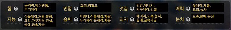 - 재봉 능력 : 실, 천짜기, 의상개조 등을 포함하는 능력