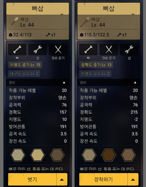 기본데미지 / 치명데미지 각각 36/54로 같음.