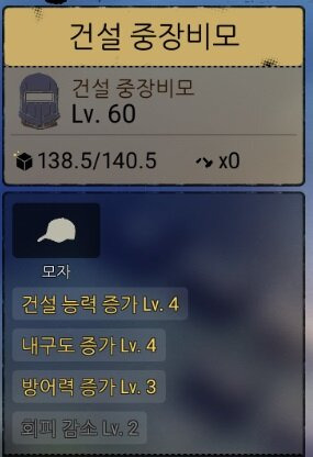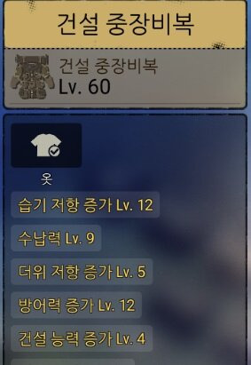 2. 건설 중장비복 착용시 (의류 건설능력증가는 단단함 속성의 가죽)