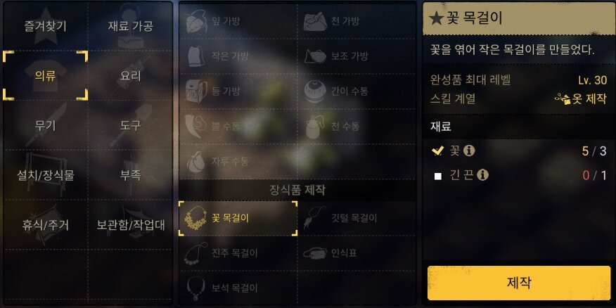 (5) 꽃 목걸이 제작 방법 ( 옷제작 스킬 15 이상 )![]()
