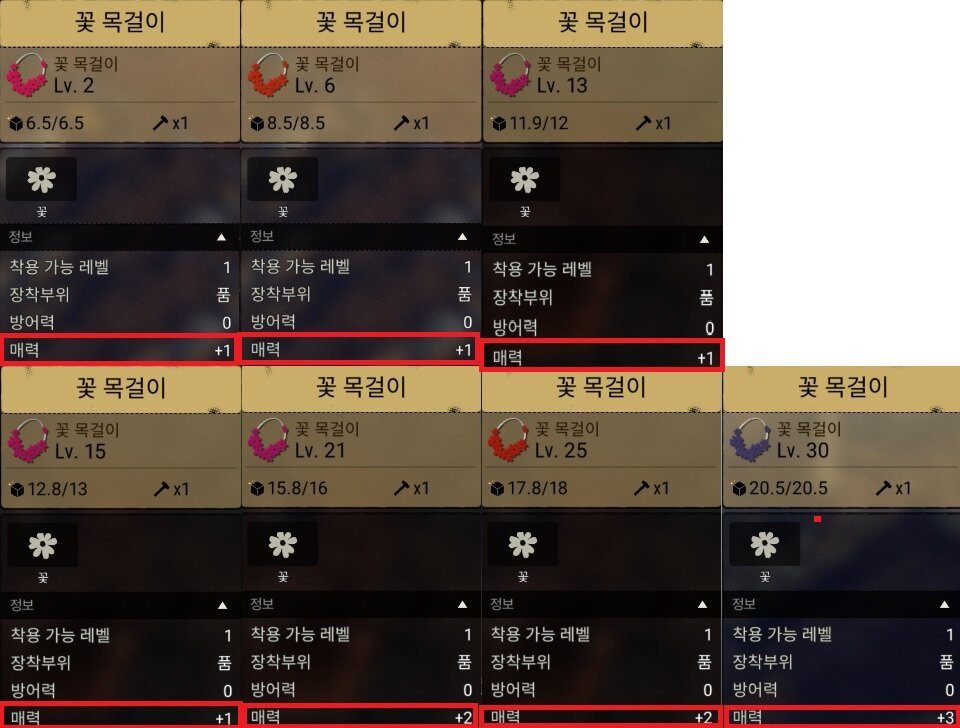 가장 낮은 레벨의 꽃 목걸이를 만들어라!