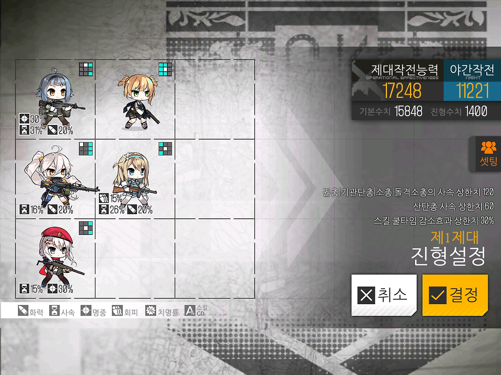 95식 - G11보단 쓸만합니다. 배율이 화력자버프계열이고 선쿨이 짧아서 빵빵한 화력버프가 필수입니다.