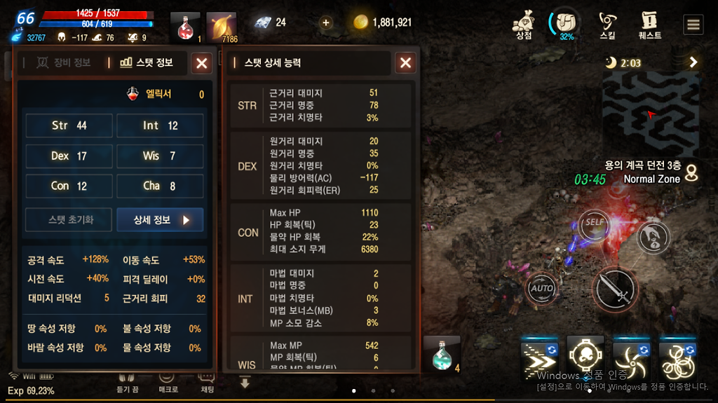 스펙 및 사냥터 스크린샷 첨부 합니다.