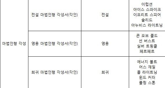제작하셨다면 아래로 내려가서 마법인형 각성서에서 각성서를 제작합니다.