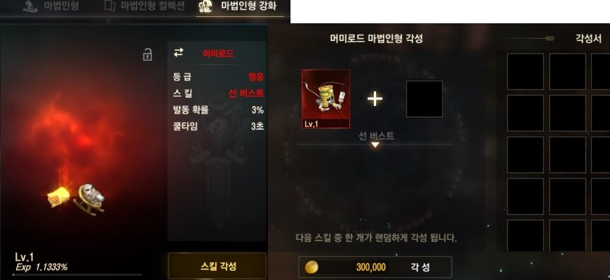 위에보면 마법인형강화라고 새로운탭이 생겼습니다.