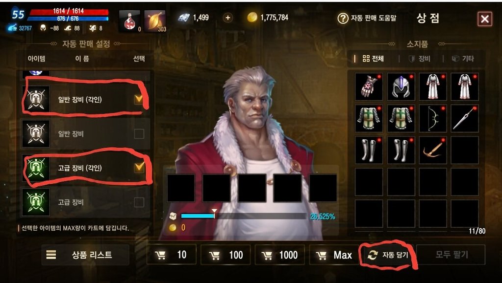 2. 아이템 매입 상인을 클릭해서 왼쪽 하단부에 자동 판매 설정 클릭