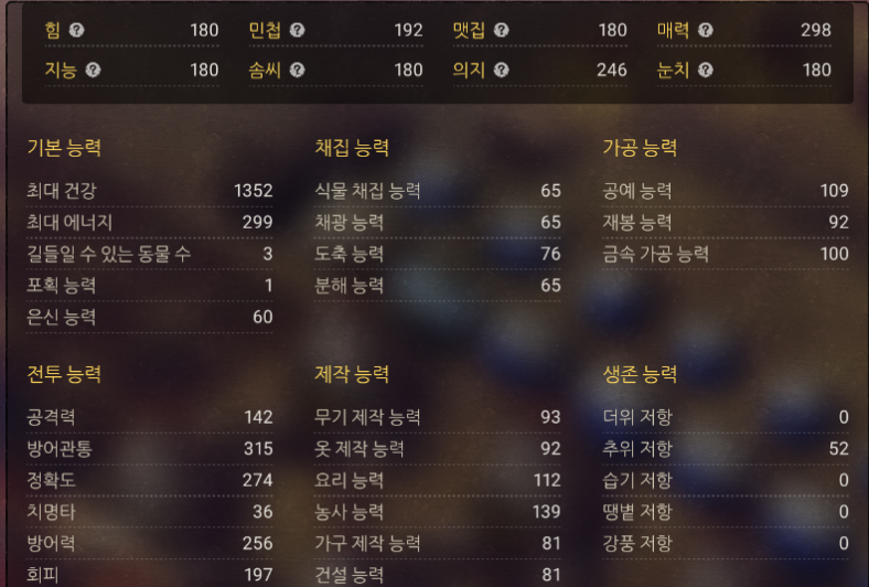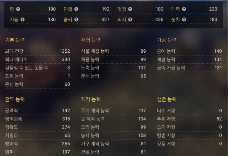 눈치를 각각 168, 189 씩 상승해줍니다. 도축과 관계있는 스텟은 눈치와 의지이기 때문에