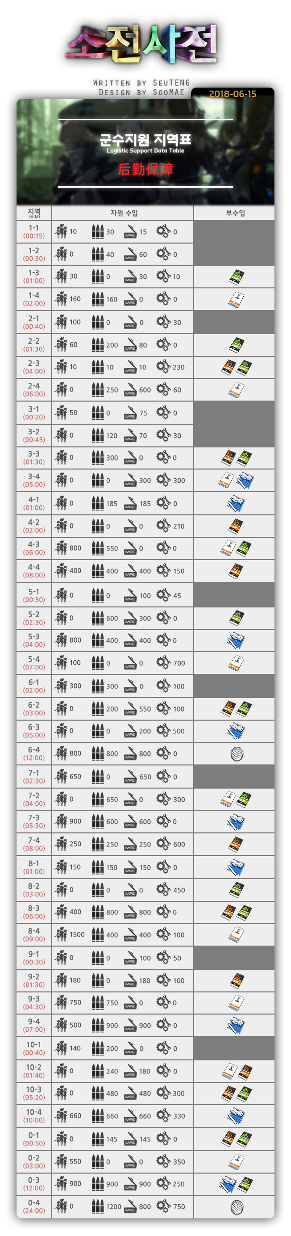 [소녀전선] 소전사전 - 군수 지원 지역표